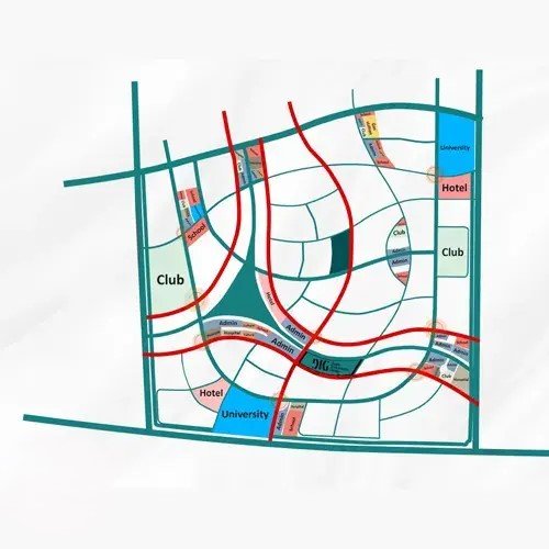 - المول التجاري: الذي يمكن للسكان الحصول على كل احتياجاتهم من خلاله.