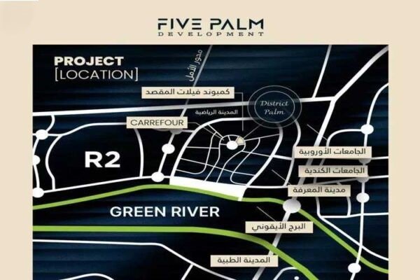 اخترنا عبر شركة فايف بالم للتطوير العقاري موقع من المواقع المثالية بعد دراسة شاملة للعديد من المواقع الحيوية المميزة التي تمكنا من اختيار الأنسب لك عبرها، وقد تميز المشروع بأنه يقع في R3 على الشارع الرئيسي بالمنطقة 270 متر، وبناء على ذلك يمكنك أن تقوم بالحصول على وحدة مميزة في موقع مثالي بالعاصمة.